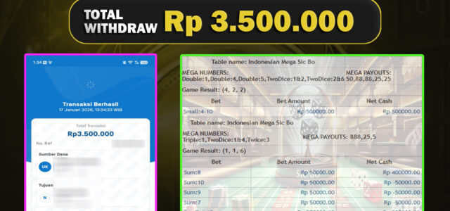 TOTAL KEMENANGAN : Rp. 3.500.000,-