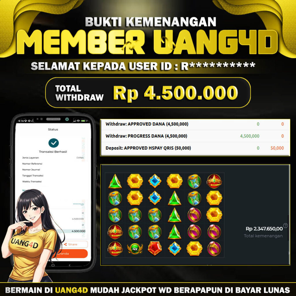 Jangan lewatkan kesempatan untuk meraih kemenangan besar. Daftar sekarang di UANG4D dan rasakan pengalaman bermain slot terbaik yang pernah ada! Putar gulungan, menangkan jackpot, dan jadilah bagian dari komunitas pemain sukses kami!