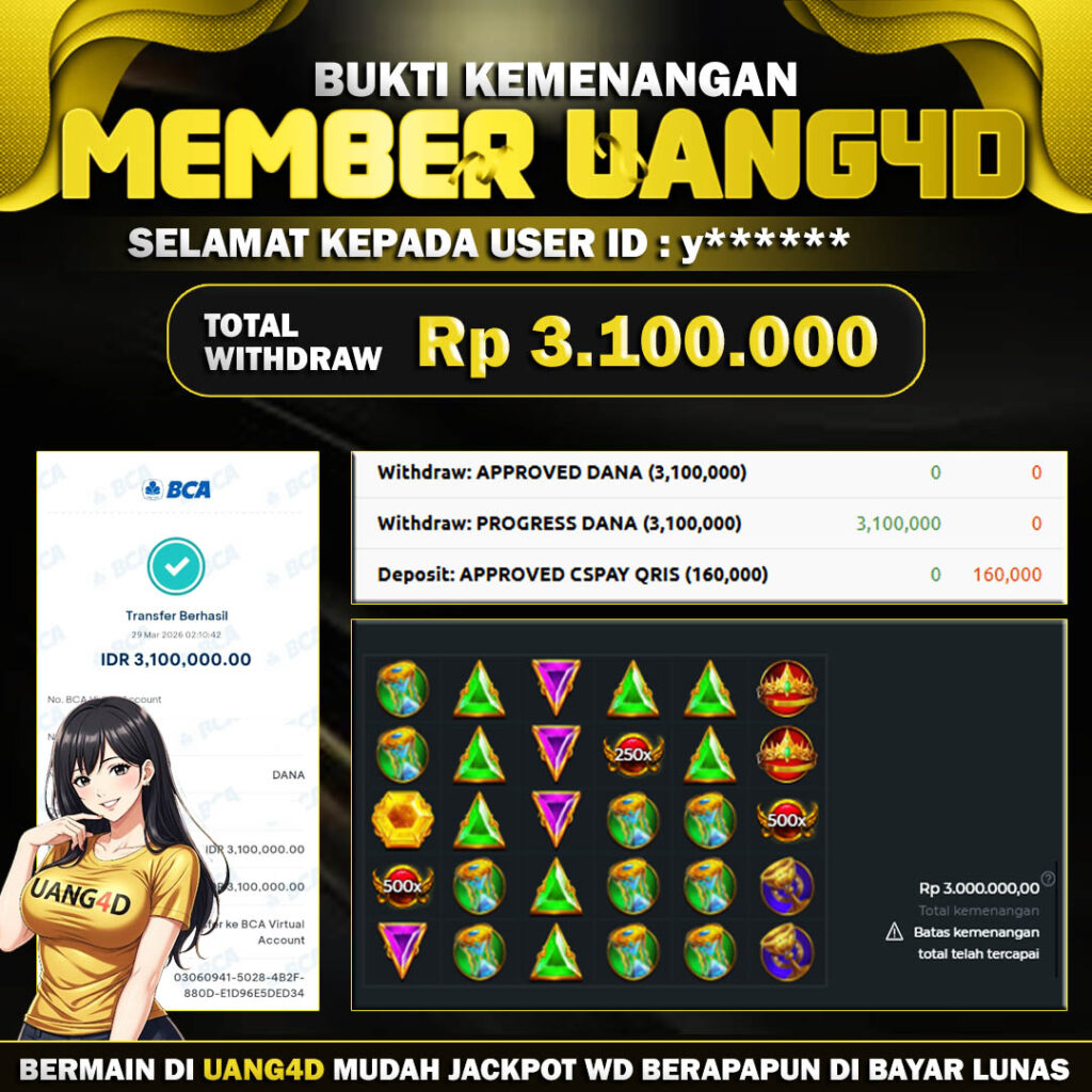 Jangan lewatkan kesempatan untuk meraih kemenangan besar. Daftar sekarang di UANG4D dan rasakan pengalaman bermain slot terbaik yang pernah ada! Putar gulungan, menangkan jackpot, dan jadilah bagian dari komunitas pemain sukses kami!