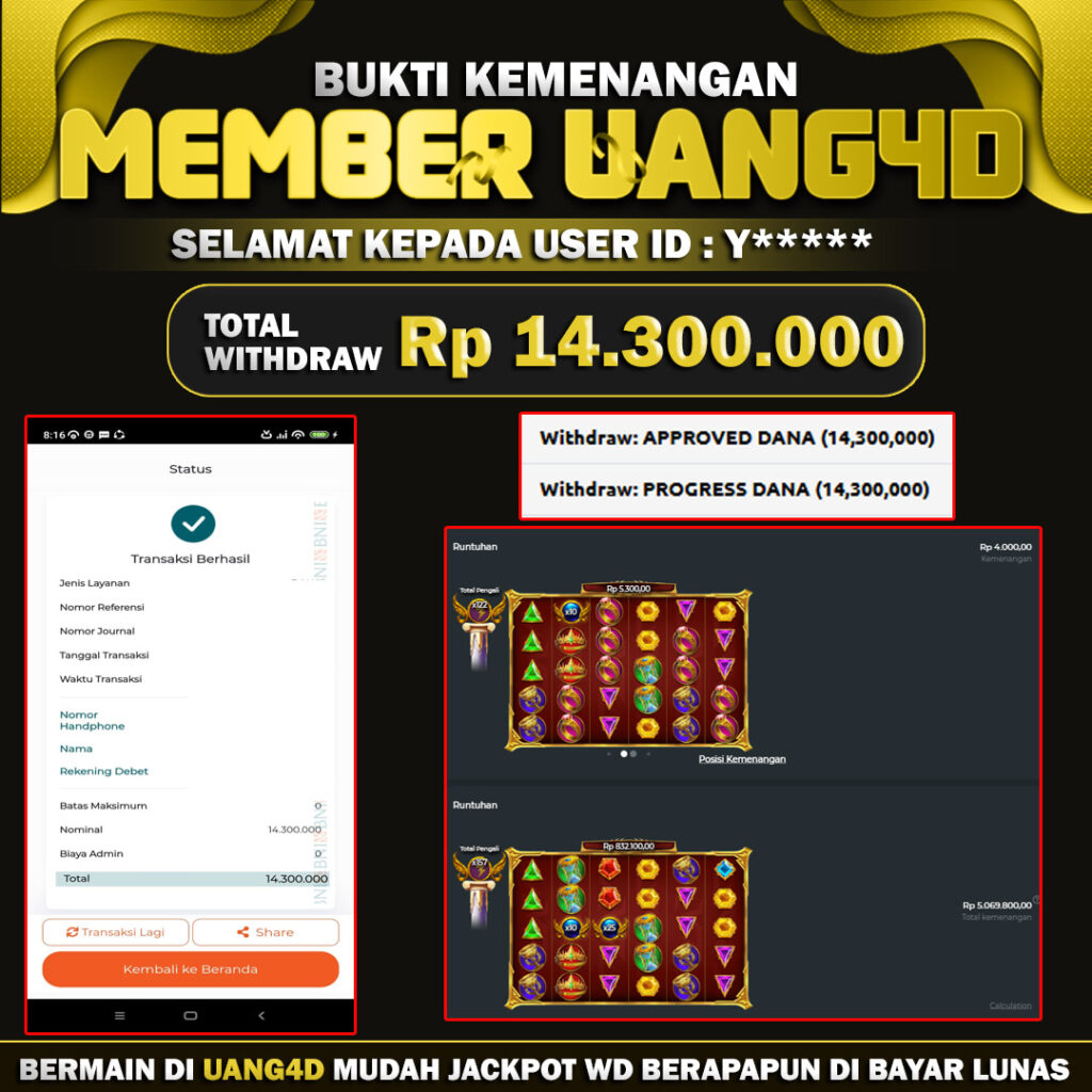 Jangan lewatkan kesempatan untuk meraih kemenangan besar. Daftar sekarang di UANG4D dan rasakan pengalaman bermain slot terbaik yang pernah ada! Putar gulungan, menangkan jackpot, dan jadilah bagian dari komunitas pemain sukses kami!