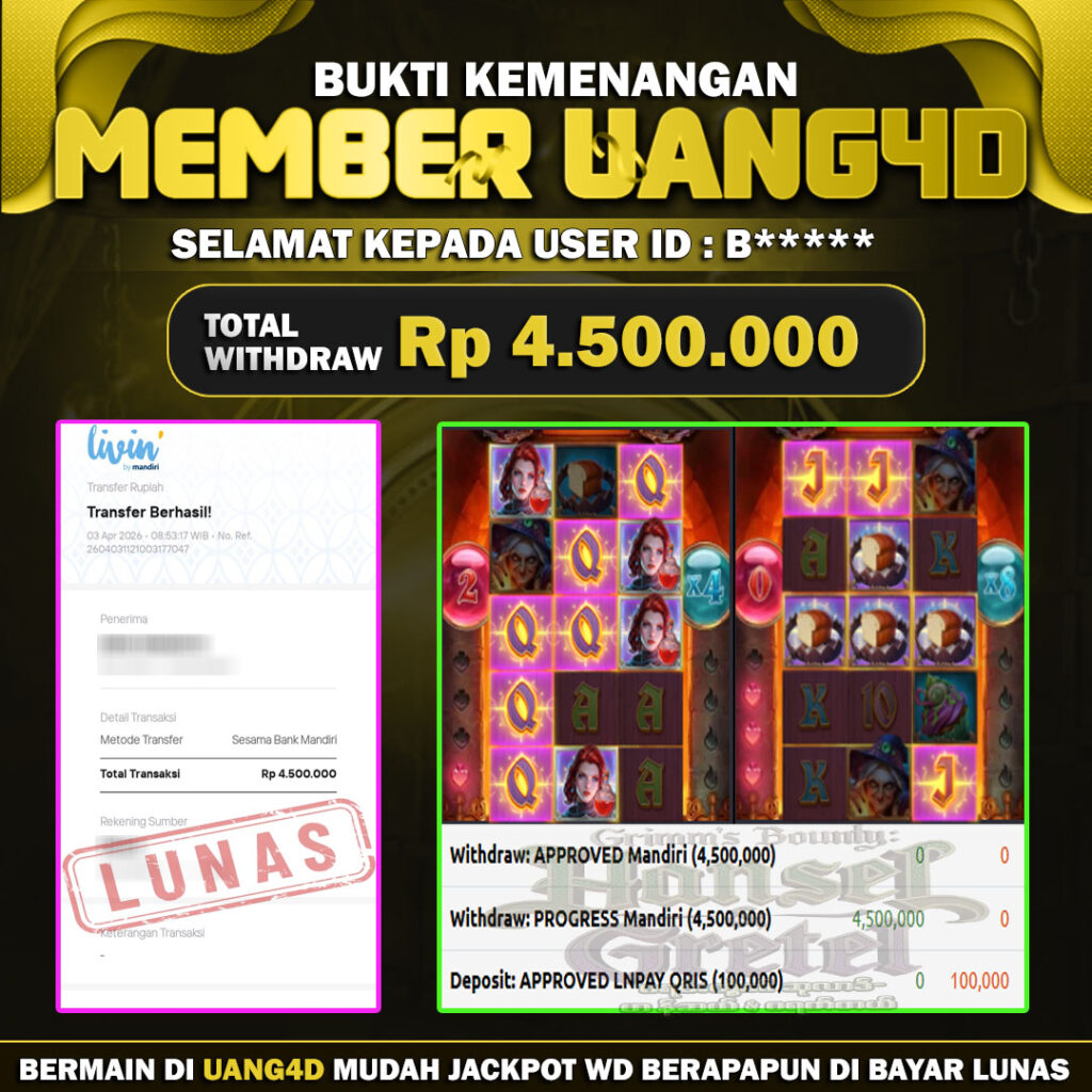 UANG4D –JACKPOT SLOT Grimms’ Bounty Hansel & Gretel 03 APRIL 2026, Jackpot Slot, Kemenangan Slot, Bukti Kemenangan Slot, Kemenangan Slot PG SOFT Play, Menang Slot online, Slot Gacor, Situs Aman Terpercaya, Withdraw Berapapun Pasti DI Bayar Tuntas, Maxwin Slot Online.