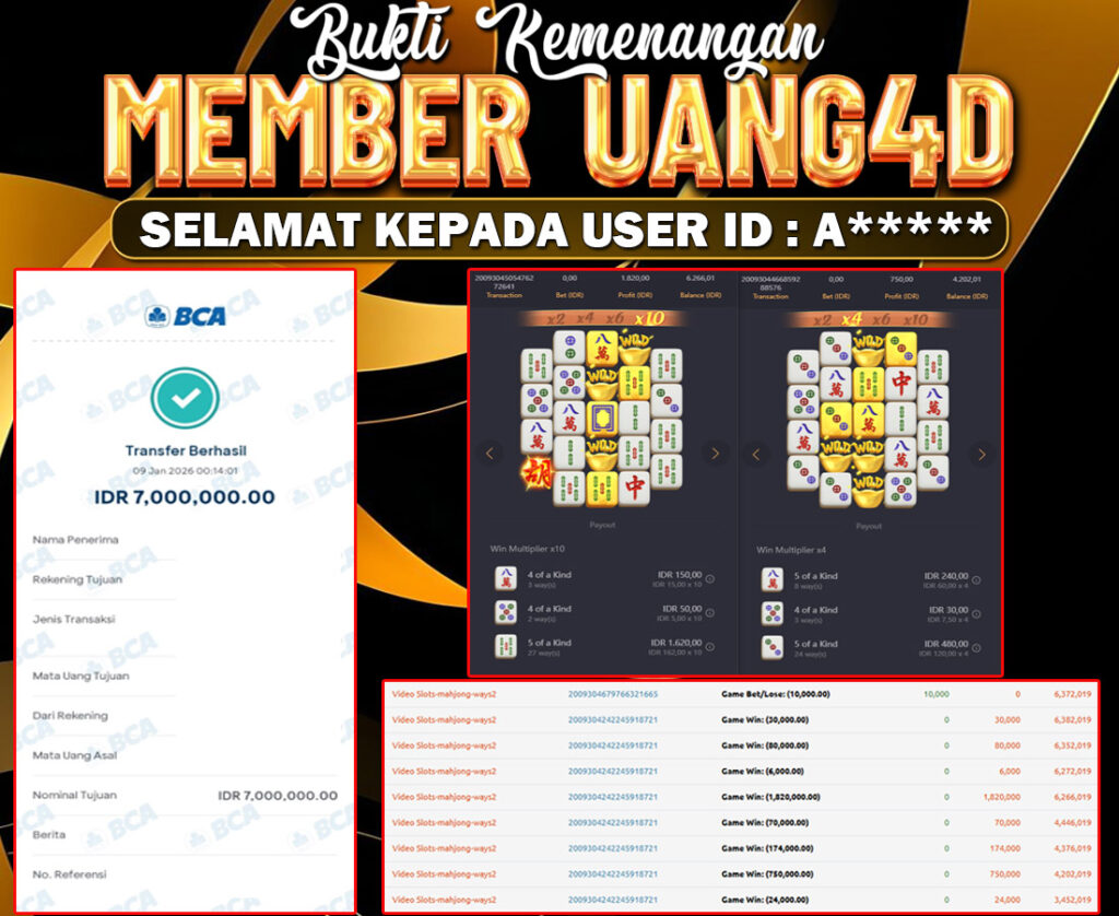 UANG4D –JACKPOT SLOT MAHJONG WAYS (2) 09 JANUARI 2026 , Jackpot Slot, Kemenangan Slot, Bukti Kemenangan Slot, Kemenangan Slot PG SOFT Play, Menang Slot online, Slot Gacor, Situs Aman Terpercaya, Withdraw Berapapun Pasti DI Bayar Tuntas, Maxwin Slot Online.