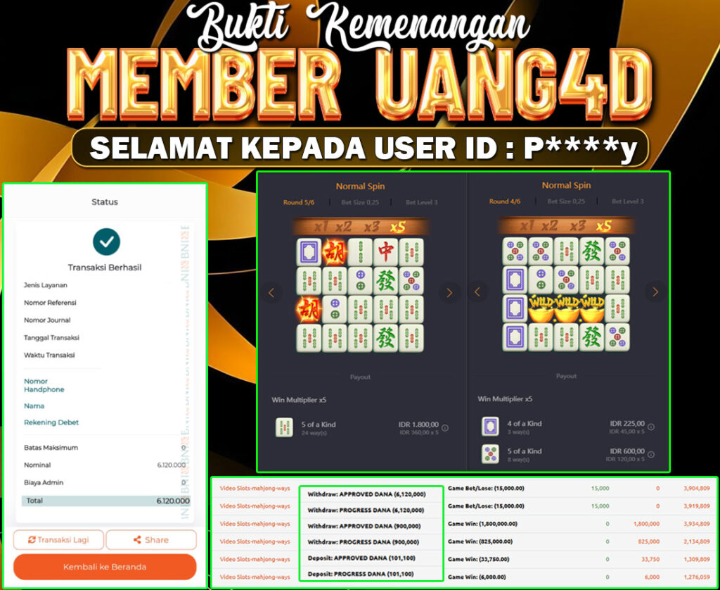 Jangan lewatkan kesempatan untuk meraih kemenangan besar. Daftar sekarang di UANG4D dan rasakan pengalaman bermain slot terbaik yang pernah ada! Putar gulungan, menangkan jackpot, dan jadilah bagian dari komunitas pemain sukses kami!