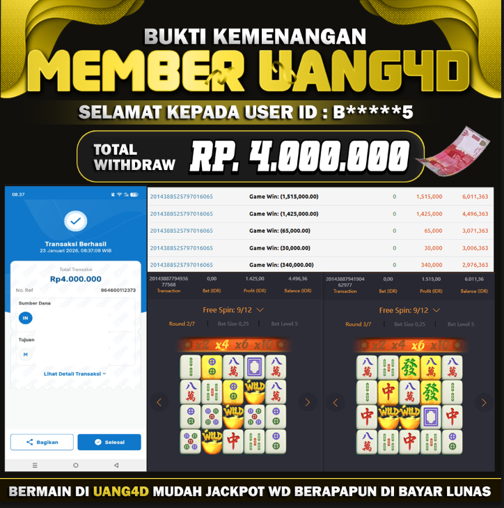 UANG4DJACKPOT SLOT MAHYONG WAYS 23 JANUARI 2026, Jackpot Slot, Kemenangan Slot, Bukti Kemenangan Slot, Kemenangan Slot PG SOFT Play, Menang Slot online, Slot Gacor, Situs Aman Terpercaya, Withdraw Berapapun Pasti DI Bayar Tuntas, Maxwin Slot Online.