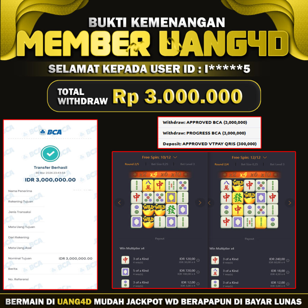 UANG4D –JACKPOT SLOT MAHYONG WAYS 31 MARET 2026, Jackpot Slot, Kemenangan Slot, Bukti Kemenangan Slot, Kemenangan Slot PG SOFT Play, Menang Slot online, Slot Gacor, Situs Aman Terpercaya, Withdraw Berapapun Pasti DI Bayar Tuntas, Maxwin Slot Online.