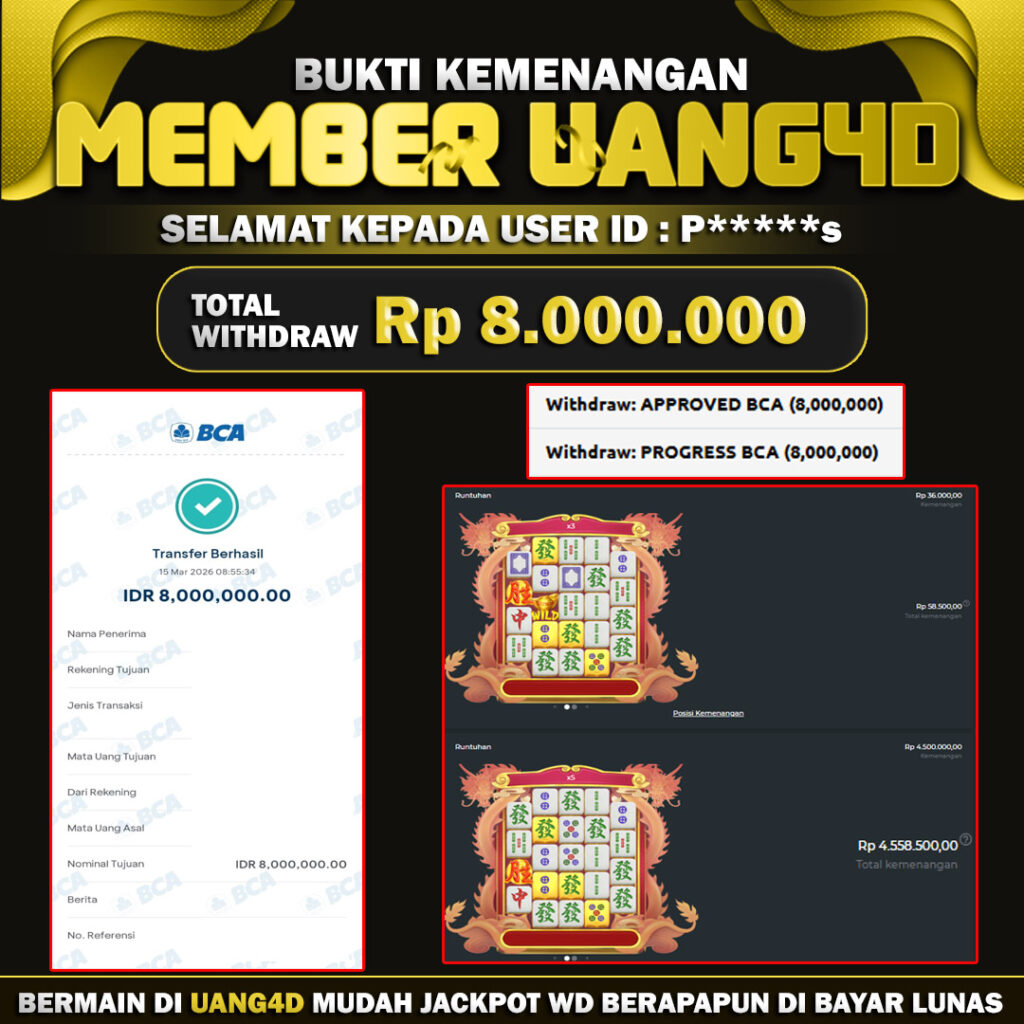 UANG4DJACKPOT SLOT MAHYONG WINS 3 15 MARET 2026, Jackpot Slot, Kemenangan Slot, Bukti Kemenangan Slot, Kemenangan Slot Pragmatic Play, Menang Slot online, Slot Gacor, Situs Aman Terpercaya, Withdraw Berapapun Pasti DI Bayar Tuntas, Maxwin Slot Online.
