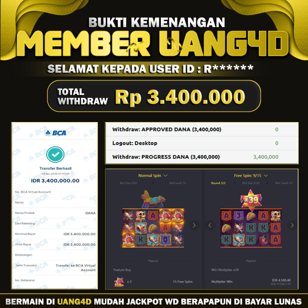 Jangan lewatkan kesempatan untuk meraih kemenangan besar. Daftar sekarang di UANG4D dan rasakan pengalaman bermain slot terbaik yang pernah ada! Putar gulungan, menangkan jackpot, dan jadilah bagian dari komunitas pemain sukses kami!