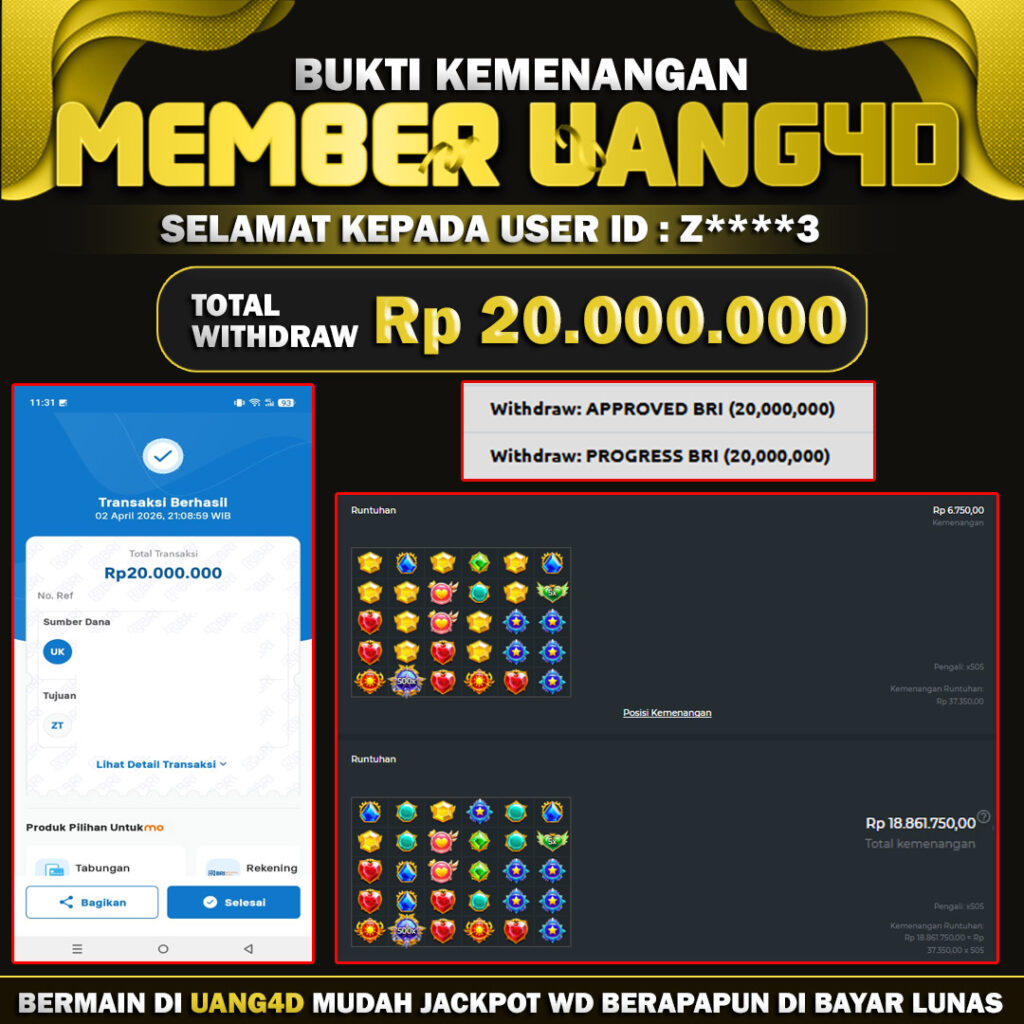 Jangan lewatkan kesempatan untuk meraih kemenangan besar. Daftar sekarang di UANG4D dan rasakan pengalaman bermain slot terbaik yang pernah ada! Putar gulungan, menangkan jackpot, dan jadilah bagian dari komunitas pemain sukses kami!