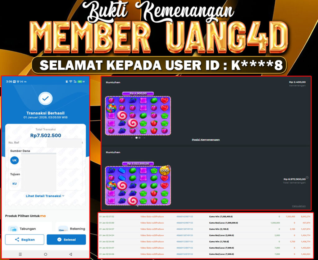 UANG4D JACKPOT SLOT SWEET BONANZA 1000 01 JANUARI 2026, Kemenangan Slot, Bukti Kemenangan Slot, Kemenangan Slot Pragmatic Play, Menang Slot online, Slot Gacor, Situs Aman Terpercaya, Withdraw Berapapun Pasti DI Bayar Tuntas, Maxwin Slot Online.