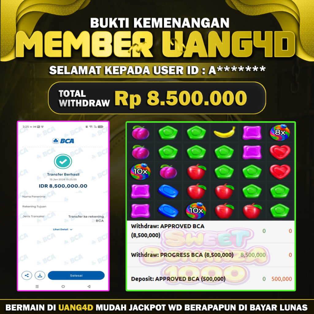 UANG4D –JACKPOT SLOT SWEET BONANZA 1000 01 JANUARI 2026, Kemenangan Slot, Bukti Kemenangan Slot, Kemenangan Slot Pragmatic Play, Menang Slot online, Slot Gacor, Situs Aman Terpercaya, Withdraw Berapapun Pasti DI Bayar Tuntas, Maxwin Slot Online.