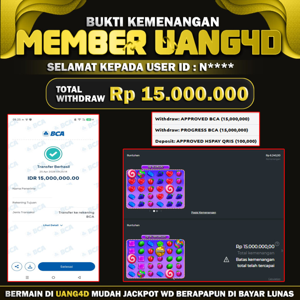 UANG4D JACKPOT SLOT SWEET BONANZA 1000 25 APRIL 2026, Kemenangan Slot, Bukti Kemenangan Slot, Kemenangan Slot Pragmatic Play, Menang Slot online, Slot Gacor, Situs Aman Terpercaya, Withdraw Berapapun Pasti DI Bayar Tuntas, Maxwin Slot Online.