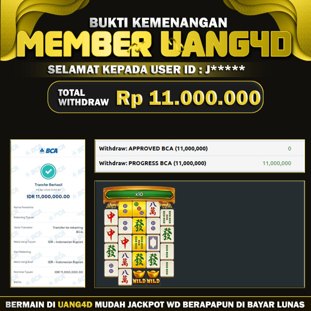 Jangan lewatkan kesempatan untuk meraih kemenangan besar. Daftar sekarang di UANG4D dan rasakan pengalaman bermain slot terbaik yang pernah ada! Putar gulungan, menangkan jackpot, dan jadilah bagian dari komunitas pemain sukses kami!