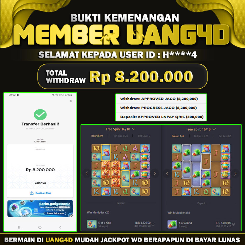 Jangan lewatkan kesempatan untuk meraih kemenangan besar. Daftar sekarang di UANG4D dan rasakan pengalaman bermain slot terbaik yang pernah ada! Putar gulungan, menangkan jackpot, dan jadilah bagian dari komunitas pemain sukses kami!